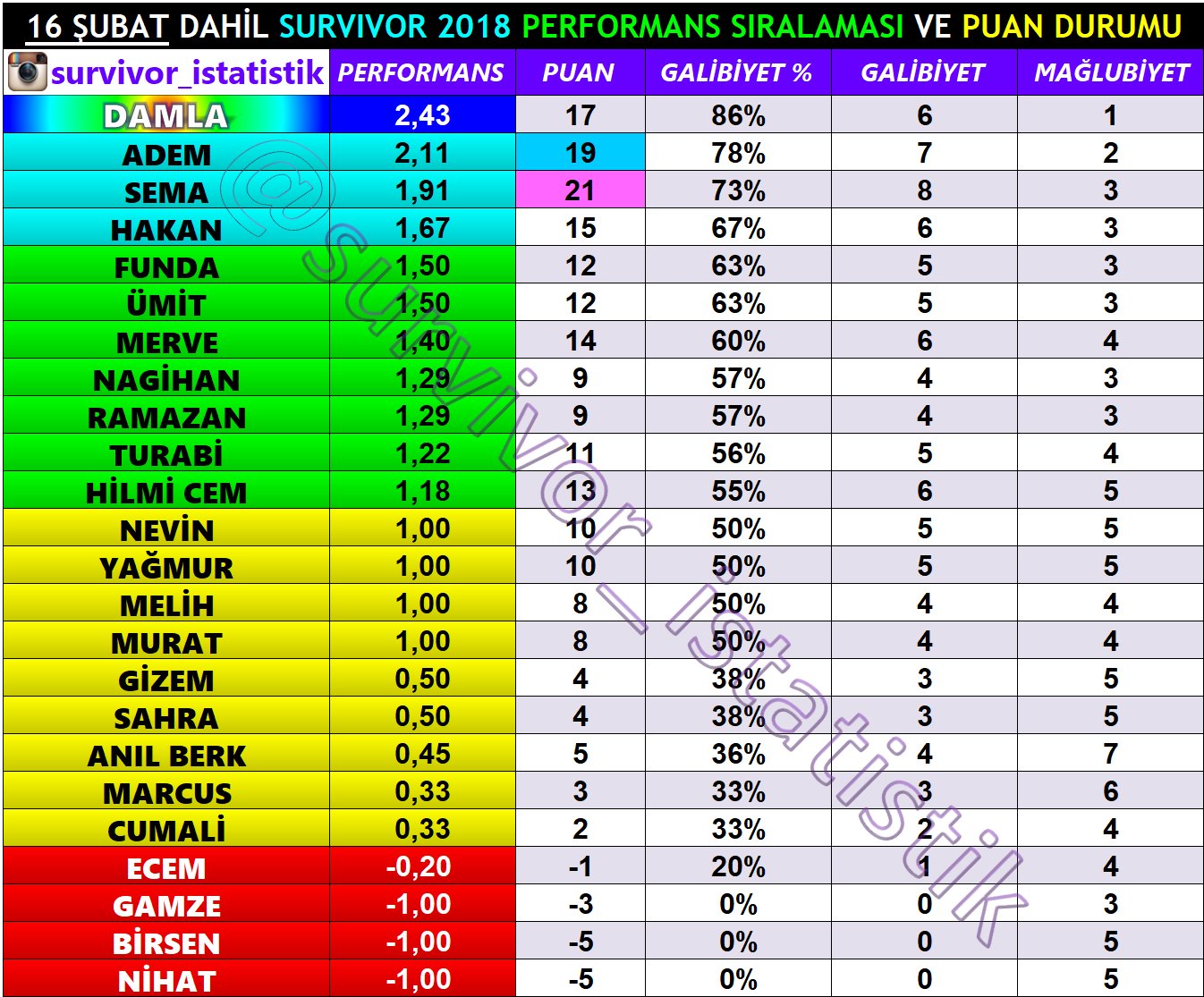 İşte 16 şubat sıralaması 6.hafta sms survivor ile bu hafta kovulan isim.