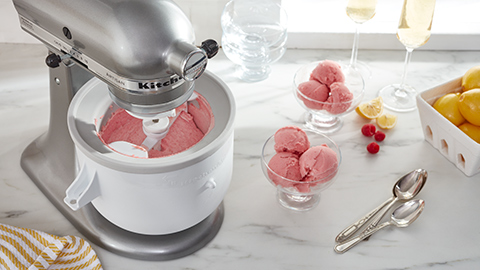 With the ice cream paddle fitted, whisk the mixture and pour into the ice cream maker bowl. Leaving the mixer bowl in there too. But otherwise it's a very simple machine. 1 for ice cream and another for sorbet and gelato. The summer you take these ice cream recipes and finally learn how to make your own.